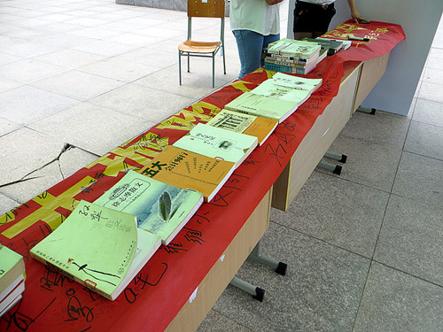 为响应4月图书月“书香溢校园”的主题,激发同学们读书的热情,这次书展现场准备了许多书籍供师生们借阅。各色经典的书籍一字排开,整齐地摆放在图书馆前的活动区,吸引着人群的驻足。许多学生在接受采访时表示,此次书展增加了他们的阅读兴趣,开拓了视野,并在横幅上签名表示支持,希望学校今后能多组织这样的书展活动。