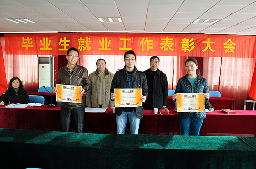 2012年3月21日下午,学院2011届毕业生就业工作表彰会在第三会议室举行。学院执行院长吕振合、党委副书记洪骏、副院长贺旭辉出席会议,各系主任、总支书记、辅导员、毕业班班主任、获奖人员与会。会议由学院招生就业指导处处长叶云琴主持。副院长贺旭辉宣读学院关于表彰2010-2011学年毕业生就业工作“先进集体”和“先进个人”的文件,三位院领导给获得荣誉的集体和个人颁奖。