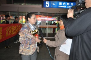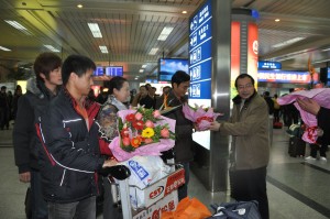 学院党委副书记洪骏亲到机场迎接师生凯旋